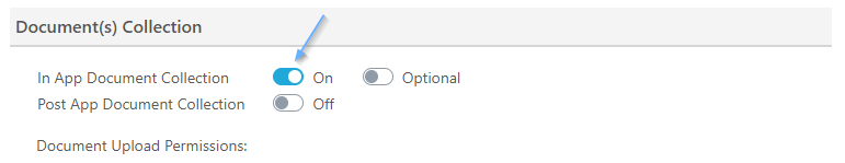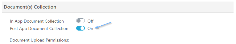 1) To select this option, under "Document(s) Collection, toggle on "Post App Document Collection"