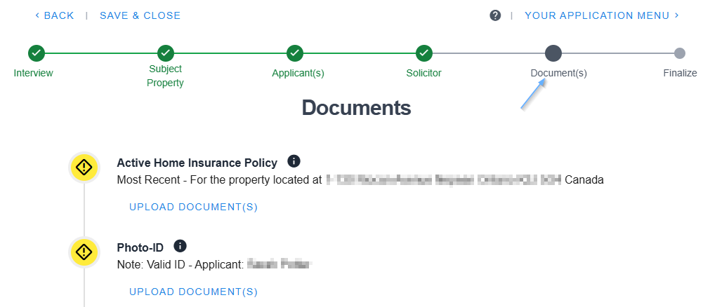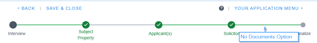 This offers your clients the option to upload their documents during the application process. Once they have completed the interview portion of the application, the document portal will open and they can upload documents they have on hand before hitting the finalize button.