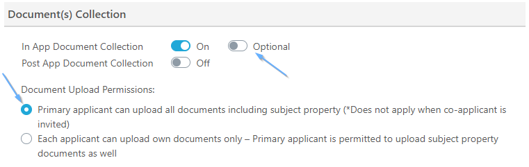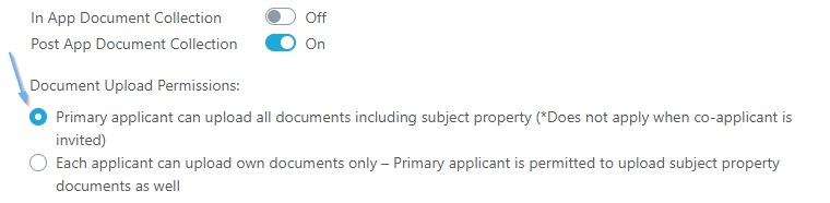 3) Select whether you want the primary applicant to have the ability to upload all documents, or whether you want each applicant to be limited to their own documents only.